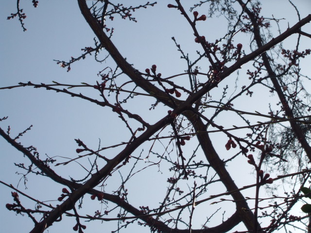 スタジオの前にある小さなお庭の梅がつぼみをつけました