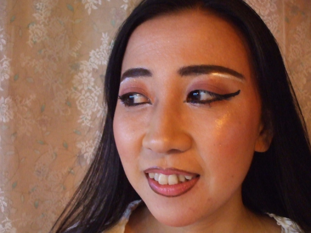 すっぴんに化粧水から始めて・・・ファンデーション・・・塗り方、ラインひき方・・・全部練習します
